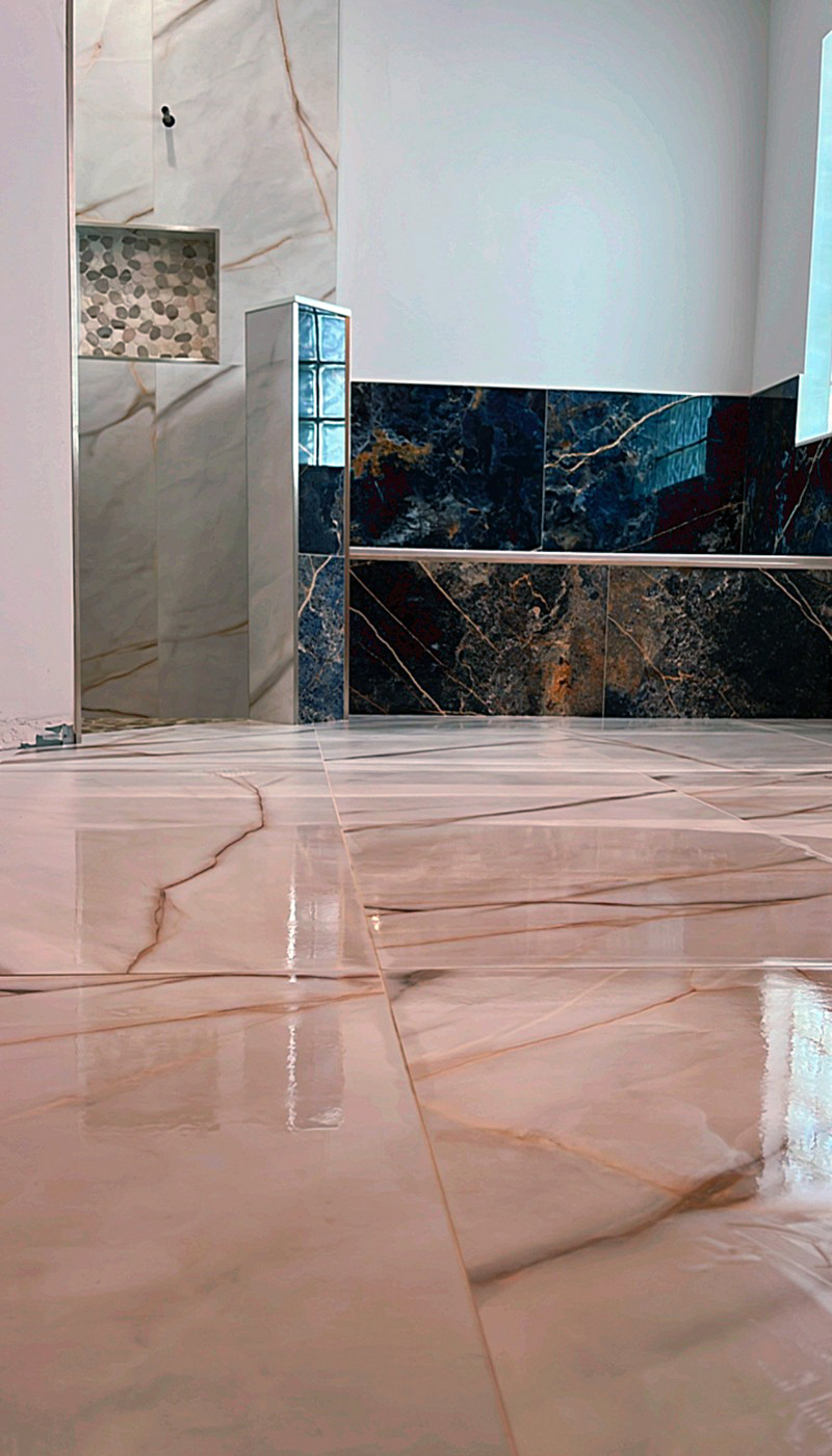 Their owner still works on site, kneeling over marble mosaics or setting porcelain planks, checking every line with the same care a cabinetmaker might give to fine joinery. It’s the kind of presence that reassures homeowners — the rare feeling that the person leading the job is also the one turning the wrench, adjusting the spacing, making sure each tile sits exactly where it should.